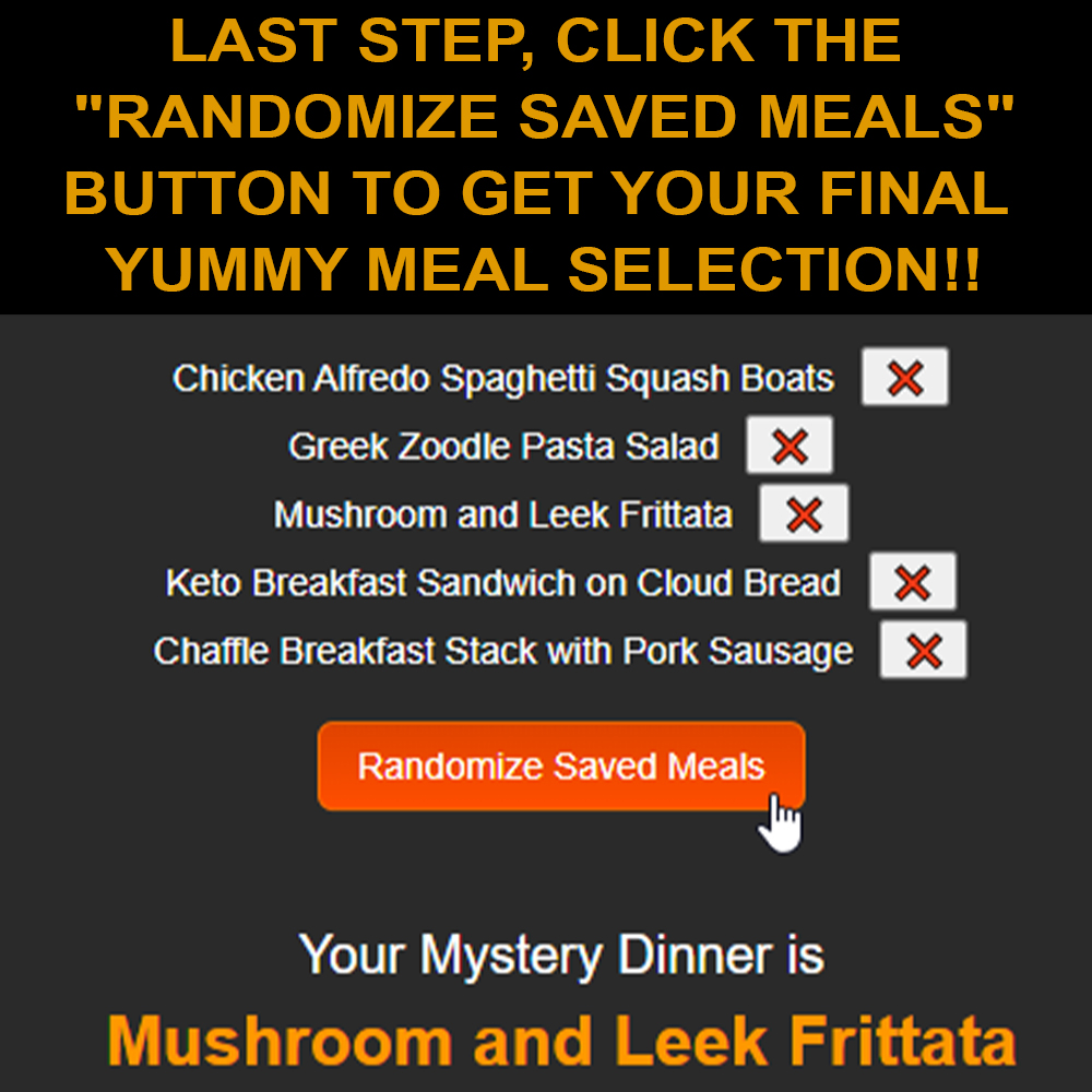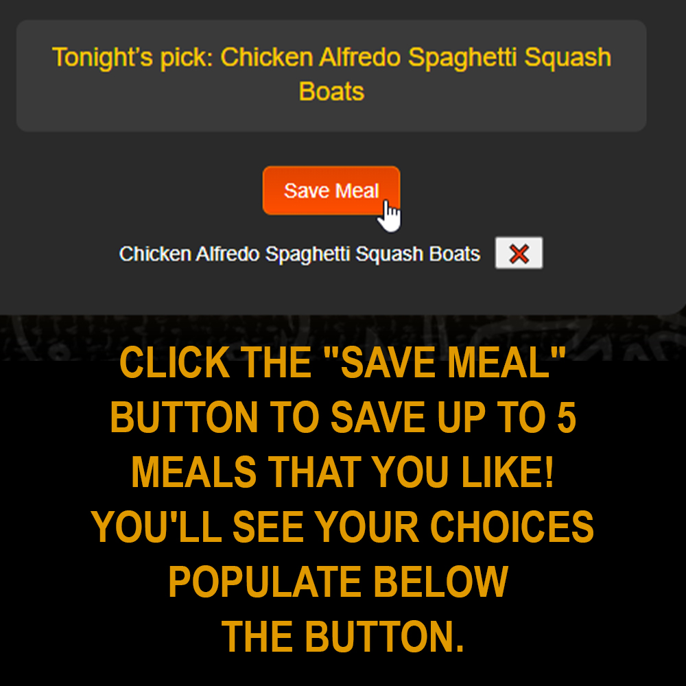 Step 5: Once you have you 5 saved meal choices simply click the “Randomize Saved Meals” button to generate your final meal selection — bon appétit!